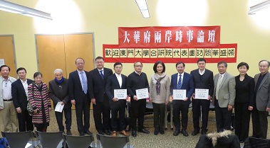 作为此次访美的第一站也是唯一一场公开活动,访问团一行应邀访问“大华府两岸时事论坛”,并就当前台湾选举与两岸关系与在美侨界知名人士举行座谈。“大华府两岸时事论坛”社长潘玲荣女士主持座谈会并向四位学者颁发感谢状。李鹏副会长表示,这是一场形势空前复杂、民主退步的选举,也是一场台湾内部民调失灵、外部干预痕迹明显的选举。他就未来两岸关系发展的可能性进行了预测和分析,但强调不管谁当选,大陆都会继续加强两岸交流合作,深化两岸融合发展,这种基本方针政策不会改变。陈先才副秘书长、李非理事和季烨理事分别围绕台湾选举中的第三势力、两岸融合发展和台美关系等问题发表见解。